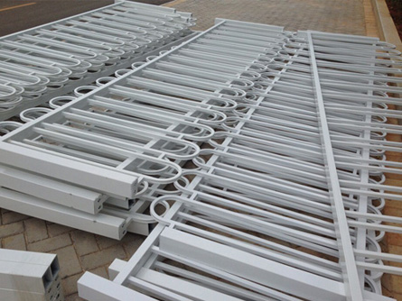 立柱80*80MM,豎桿采用圓鋼16*16MM下面的槽鋼63*40MM,連接片50*5MM。